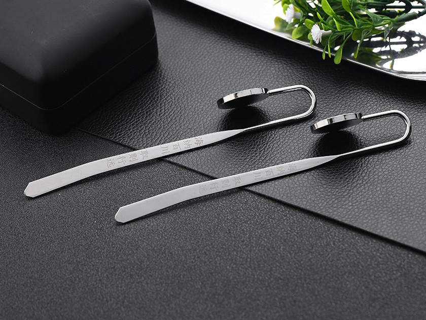 【制(zhì)作(zuò)工藝】:沖壓 【上(shàng)色工藝】:烤漆/激光雕刻 【電(diàn)鍍顔色】:銀色 【背面工藝】:砂底 【産品配件】:如意書(shū)簽杆