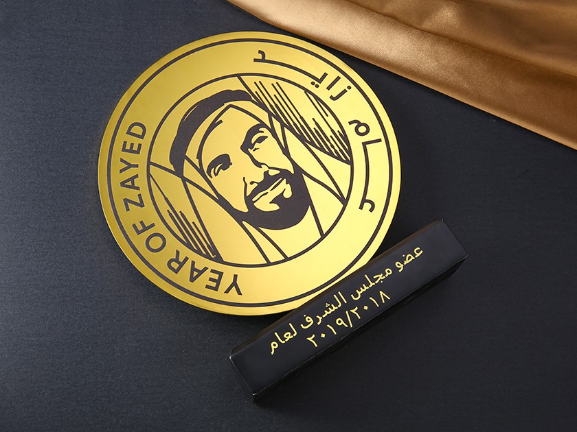 【制(zhì)作(zuò)工藝】:沖壓 【上(shàng)色工藝】:彩噴 【電(diàn)鍍顔色】:金色 【背面工藝】:彩噴 【産品配件】:木底座+雕刻