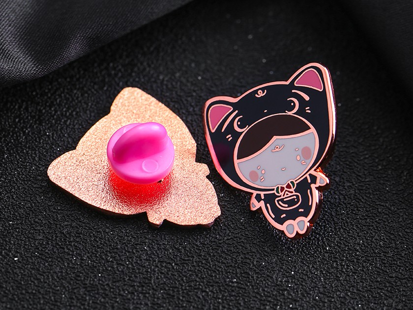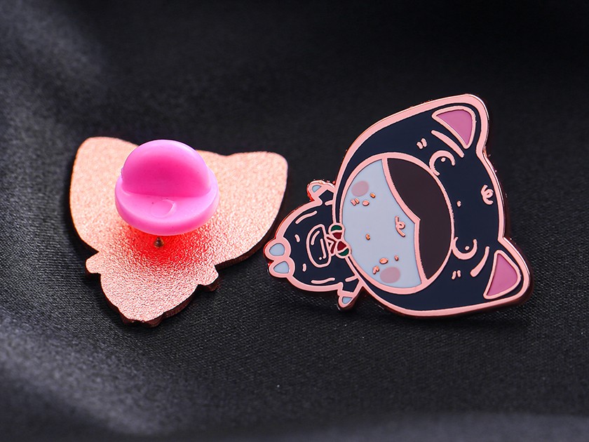 【制(zhì)作(zuò)工藝】:沖壓 【上(shàng)色工藝】:仿琺琅 【電(diàn)鍍顔色】:玫瑰金 【背面工藝】:砂底 【産品配件】:橡膠扣