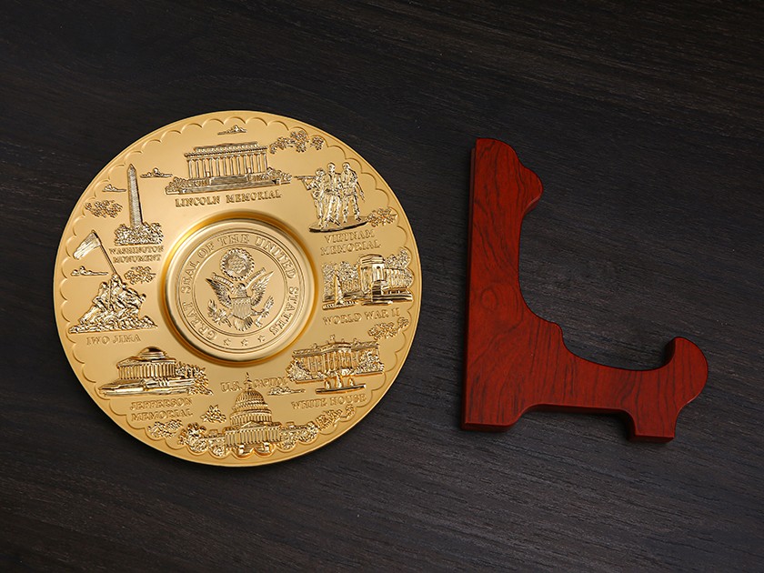 【制(zhì)作(zuò)工藝】:壓鑄 【上(shàng)色工藝】:金屬本色 【電(diàn)鍍顔色】:金色 【背面工藝】:亮面 【産品配件】:木支架